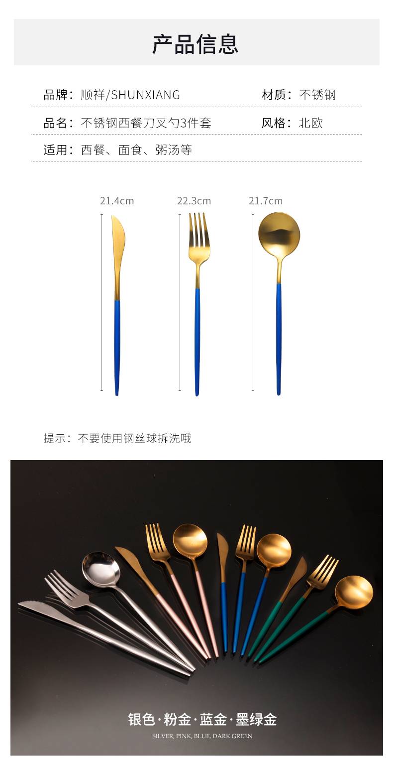 名稱:不銹鋼西餐刀叉勺3件套 品牌:順祥 材質(zhì):不銹鋼 風格:北歐 產(chǎn)地:中國潮州 適用范圍:西餐、面食、粥湯等